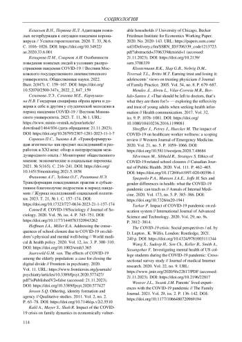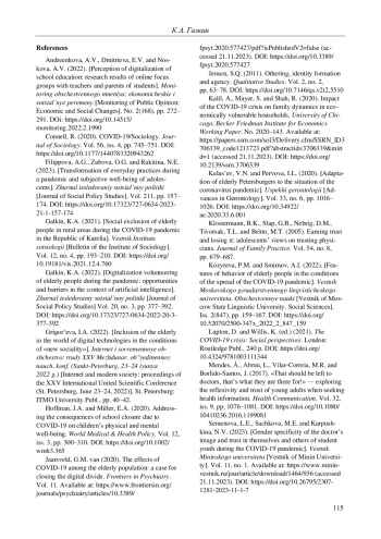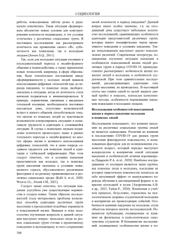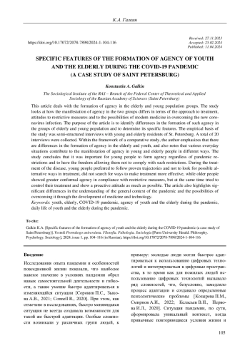Статья: ОСОБЕННОСТИ ФОРМИРОВАНИЯ АГЕНТНОСТИ МОЛОДЕЖИ И ПОЖИЛЫХ ЛЮДЕЙ В ПЕРИОД ПАНДЕМИИ COVID-19 (НА ПРИМЕРЕ САНКТ-ПЕТЕРБУРГА) (2024)