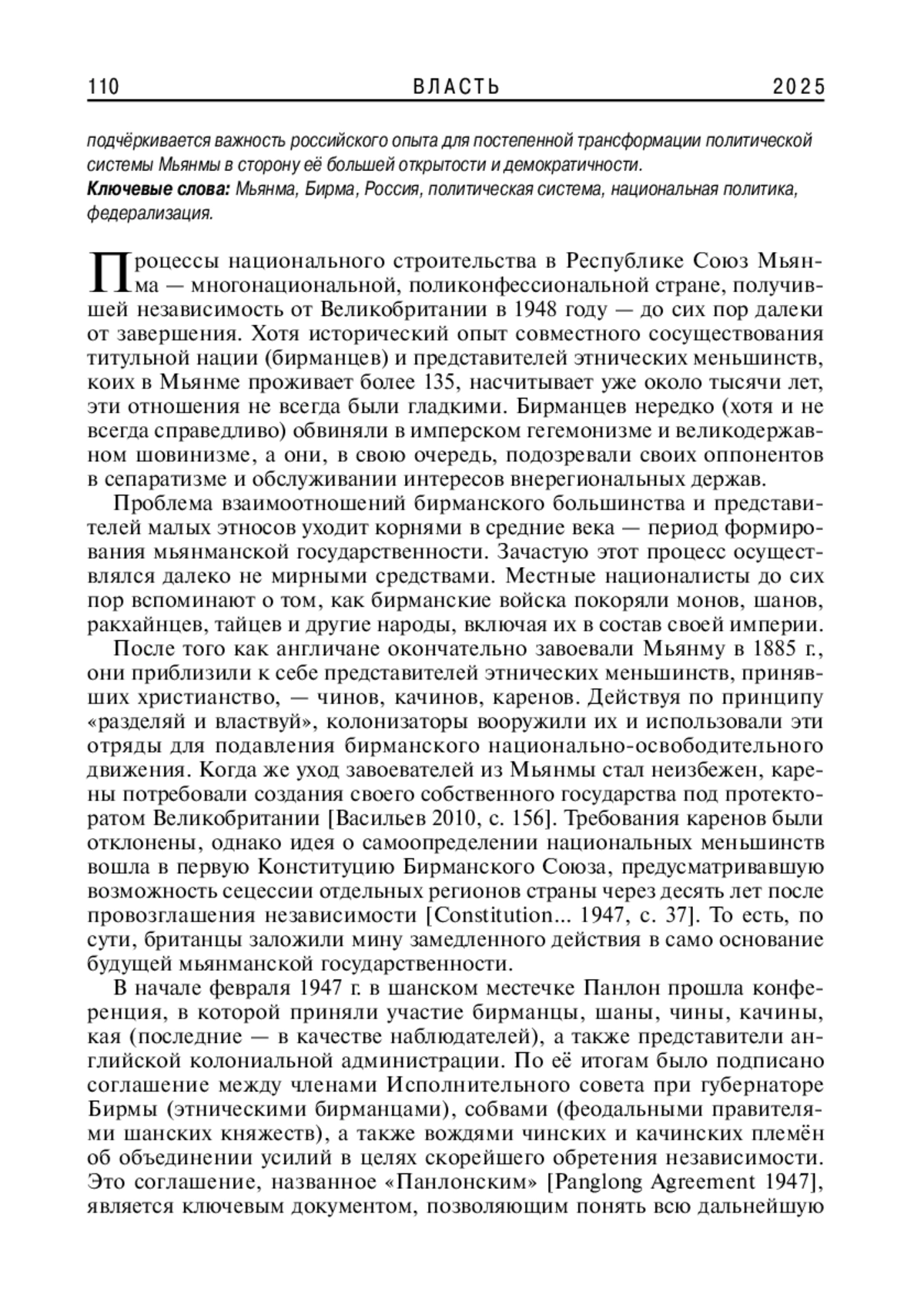 12. The Panglong Agreement (signed on February 12, 1947). Доступ: http://www.myanmar-law-library.org/law-library/laws-and-regulations/constitutions/the-panglong-agreement-1947.html (проверено 31.01.2025).