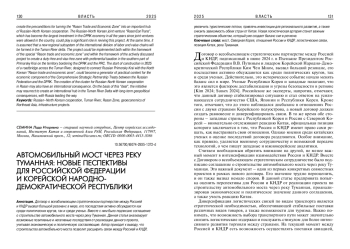 Статья: АВТОМОБИЛЬНЫЙ МОСТ ЧЕРЕЗ РЕКУ ТУМАННАЯ: НОВЫЕ ПЕСПЕКТИВЫ ДЛЯ РОССИЙСКОЙ ФЕДЕРАЦИИ И КОРЕЙСКОЙ НАРОДНО- ДЕМОКРАТИЧЕСКОЙ РЕСПУБЛИКИ (2025)