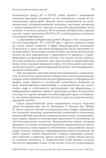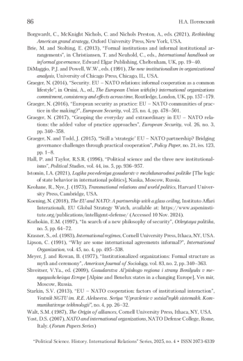 Статья: Понятие внеинституциональности в рамках сотрудничества ЕС и НАТО (2025)