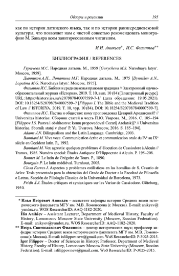 4. Филиппов И.С. Паства и общество: кому проповедовал Цезарий Арелатский? // Universitas historiae. Сборник статей в честь П.Ю. Уварова. М., 2016. С. 185-194. EDN: WJPIRD