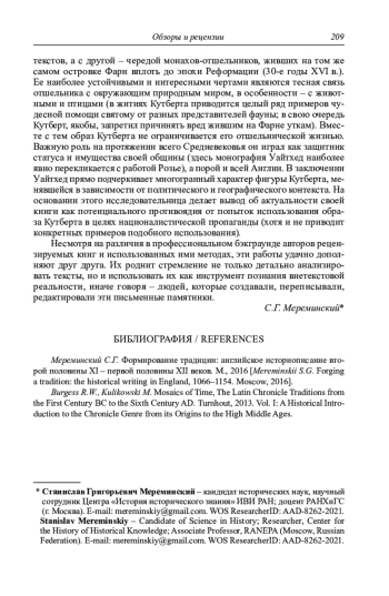 1. Мереминский С.Г. Формирование традиции: английское историописание второй половины XI - первой половины XII веков. М., 2016.