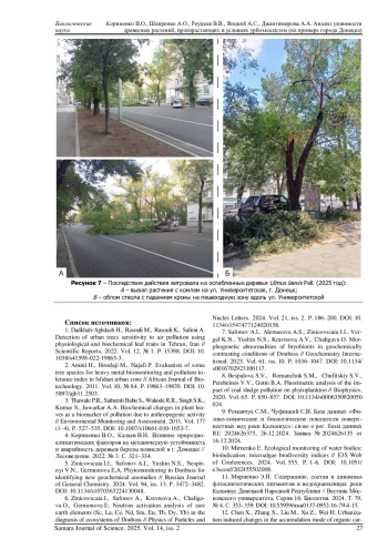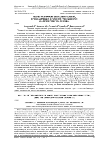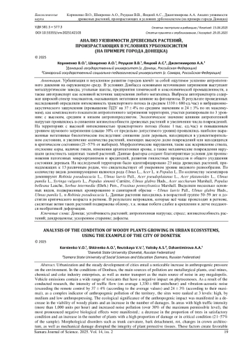 Статья: АНАЛИЗ УЯЗВИМОСТИ ДРЕВЕСНЫХ РАСТЕНИЙ, ПРОИЗРАСТАЮЩИХ В УСЛОВИЯХ УРБОЭКОСИСТЕМ (НА ПРИМЕРЕ ГОРОДА ДОНЕЦКА) (2025)