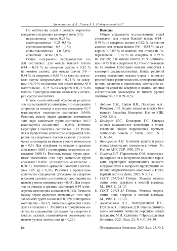 ДОСТОВАЛОВА Д. А., ГЛУХОВ А.З., ПОДГОРОДЕЦКИЙ Н. С. СОДЕРЖАНИЕ СОЛЕЙ В ПОРОДЕ ШАХТНЫХ ОТВАЛОВ ДОНБАССА // ПРОМЫШЛЕННАЯ БОТАНИКА. 2025. № 2, ТОМ 25