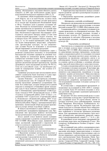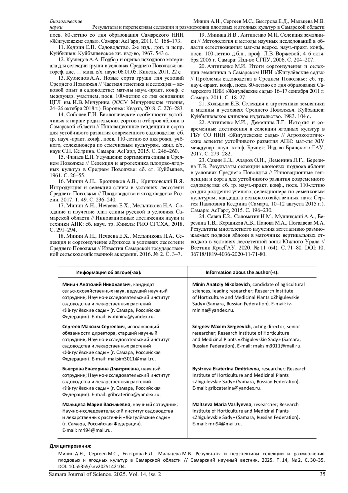 17. Минин А.Н., Нечаева Е.Х., Мельникова Н.А. Создание и изучение элит сливы русской в условиях Самарской области // Инновационные достижения науки и техники АПК: сб. науч. тр. Кинель: РИО СГСХА, 2018. С. 291-294. EDN: VUKRPW