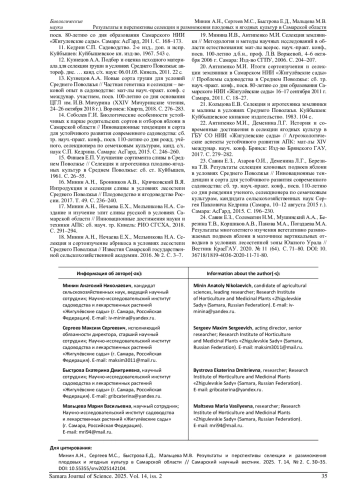 9. Кузнецов А.А. Новые сорта яблони для Среднего Поволжья // Селекция и сорторазведение садовых культур. 2020. Т. 7, № 1-2. С. 88-93. EDN: TOEZOY