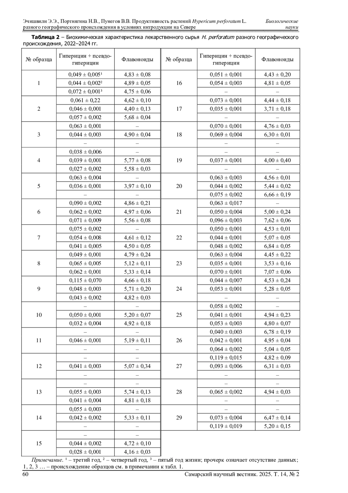 14. Эчишвили Э.Э., Портнягина Н.В., Пунегов В.В. Сравнительная морфобиологическая характеристика интродуцируемых на Севере образцов Hypericum perforatum разного географического происхождения // Самарский научный вестник. 2024. Т. 13, № 3. С. 72-80. DOI: 10.55355/snv2024133111 EDN: DOALWY