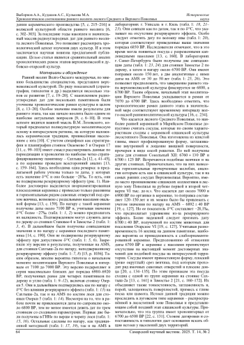 15. Hartz S., Kostyleva E., Piezonka H., Terberger T., Tsydenova N., Zhilin M.G. Hunter-gatherer pottery and charred residue dating: new results on early ceramics in the north Eurasian forest zone // Radiocarbon. 2012. Vol. 54, iss. 3-4. P. 1033-1048. DOI: 10.1017/s0033822200047652 EDN: RGGKJV