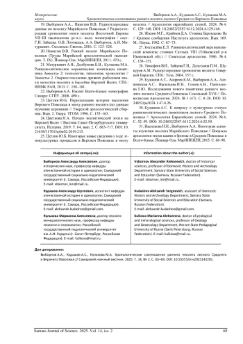 19. Выборнов А.А., Никитин В.В. Радиоуглеродные данные по неолиту Марийского Поволжья // Радиоуглеродная хронология эпохи неолита Восточной Европы VII-III тысячелетия до н.э.: колл. монография / сост. Г.И. Зайцева, О.В. Лозовская, А.А. Выборнов, А.Н. Мазуркевич. Смоленск: Свиток, 2016. С. 123-128.