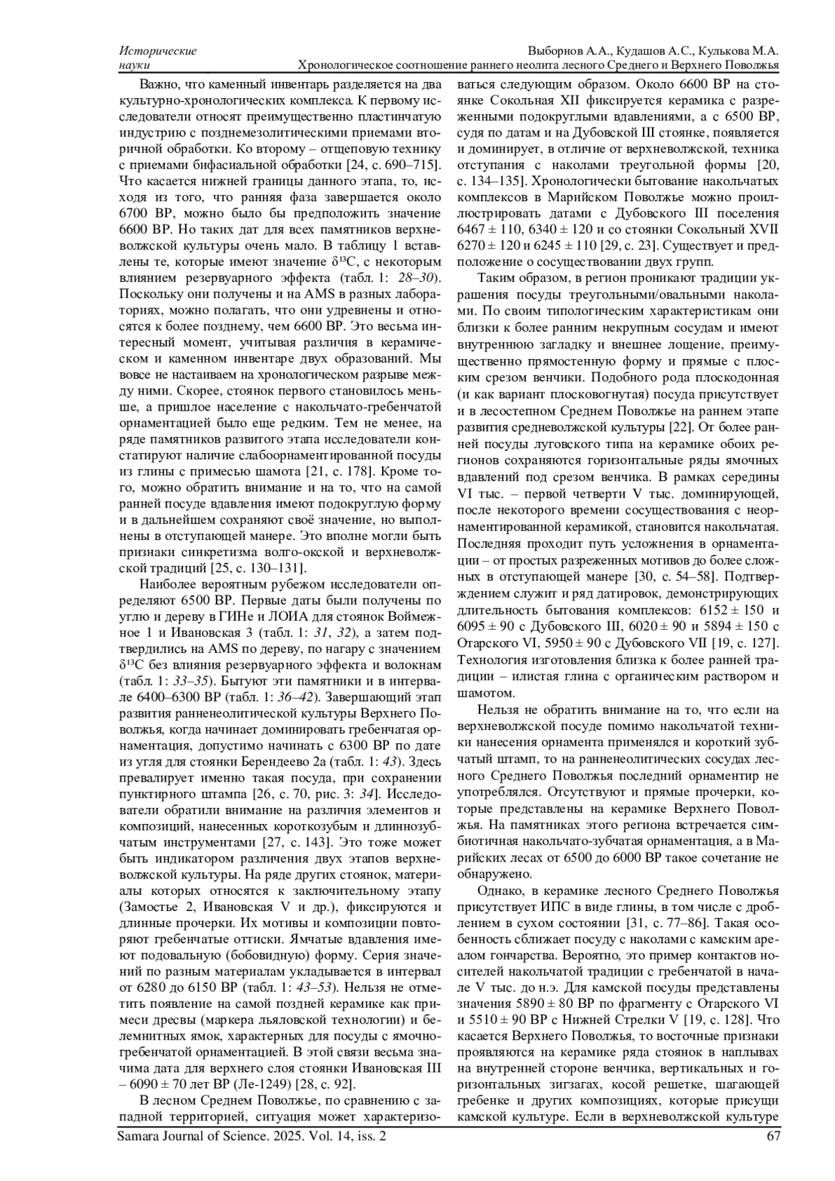 30. Кудашов А.С. К вопросу о культурном статусе ранненеолитических памятников лесного Среднего Поволжья // Археология Евразийских степей. 2024. № 6. С. 52-59. DOI: 10.24852/2587-6112.2024.6.52.59 EDN: AHGJKQ