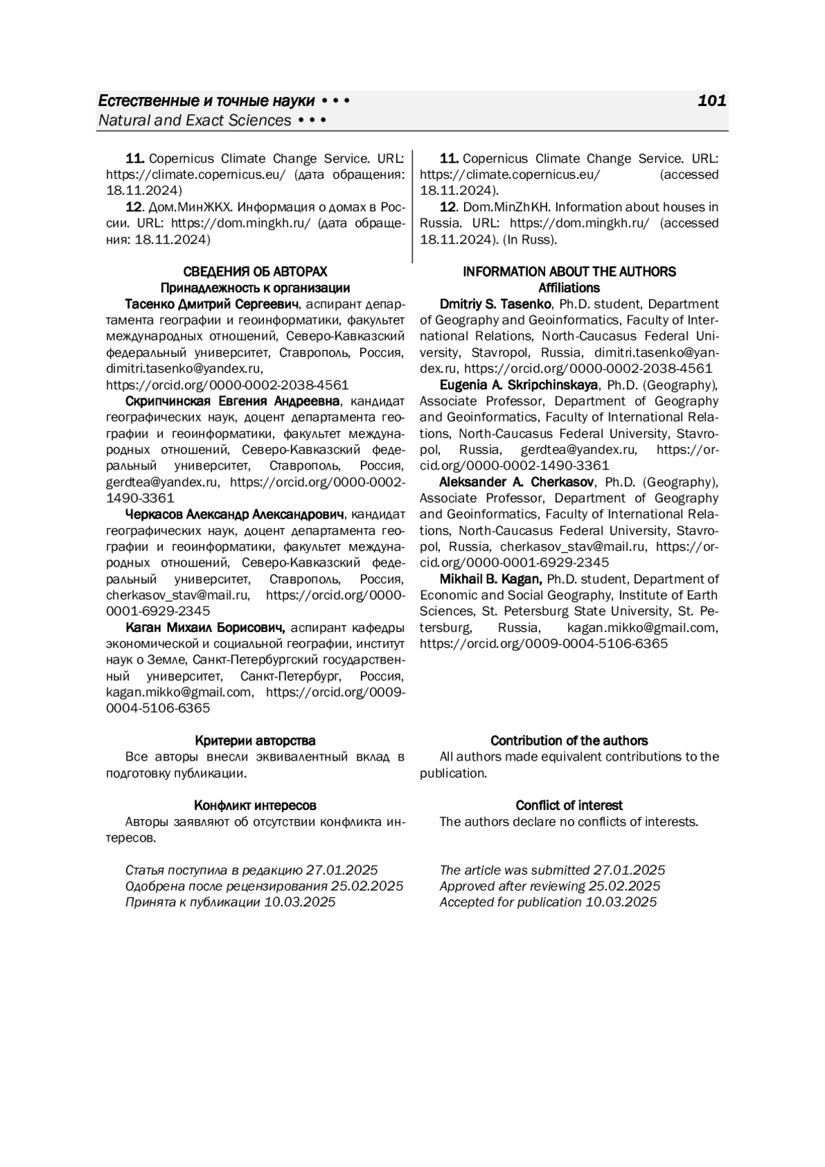 9. Скрипчинская Е. А., Тасенко Д. С., Каган М. Б. Пространственно-временная динамика теплового загрязнения среды г. Ессентуки // Наука. Инновации. Технологии. 2024. № 2. С. 63-96. DOI: 10.37493/2308-4758.2024.2.3