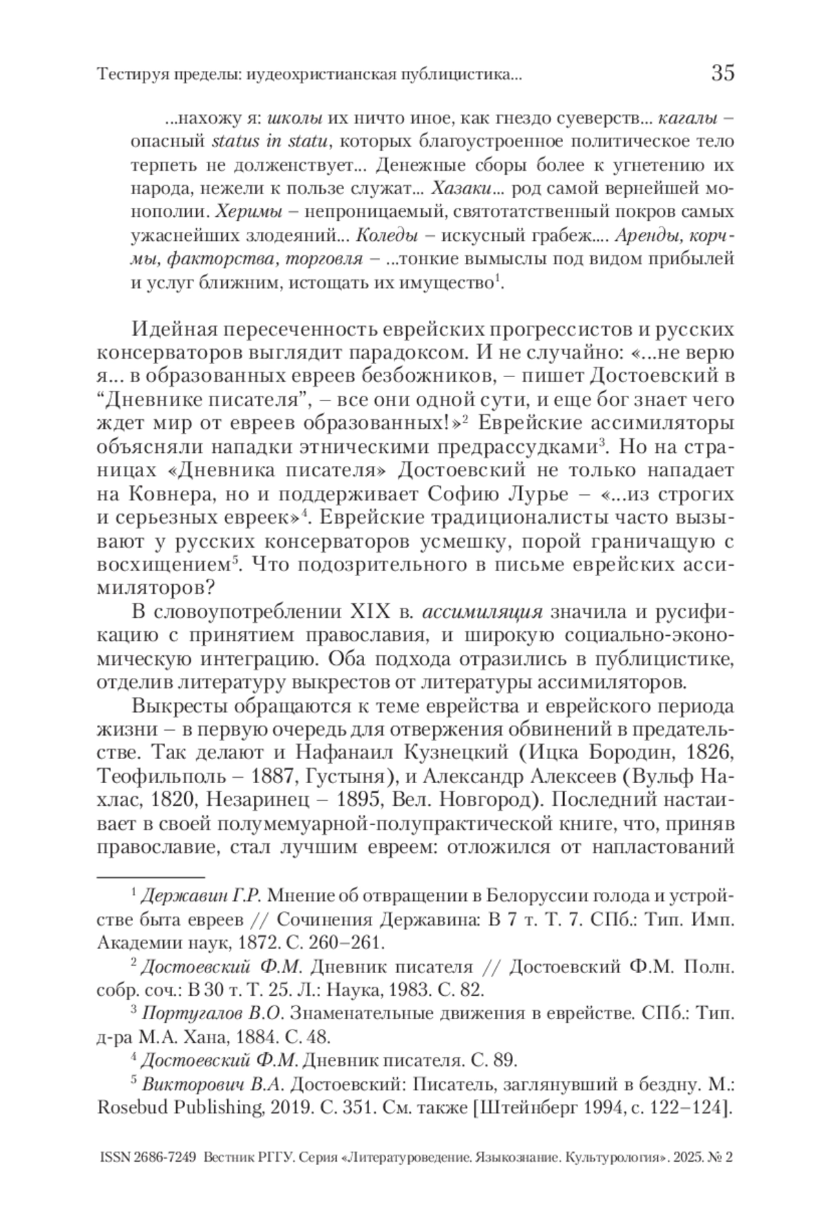 В центре статьи вопросы иудео-христианского взаимодействия, как оно представлено русскоязычной публицистикой выкрестов и радикальных ассимиляторов. На примере «Обращения иудейского законника в христианство особенно замечательное по своим характеристическим чертам» Александра Алексеева (Вульфа Нахласа) и «Программы журнала “Глас спасения” (1884)» Айзика Ковнера, равно как и его писем к Н. С. Лескову, мы показываем, как представители обоих направлений тестируют устоявшиеся представления о еврействе и христианстве. Выкрест Александр Алексеев фокусирует свои рассуждения о евреях на происхождении, в то время как религиозную принадлежность вытесняет на периферию. Ассимилятор Айзик Ковнер желает так реформировать иудаизм, чтобы в глазах христиан он выглядел частью христианского континуума, но в то же время сохранял традиционный еврейский этос. Оба направления публицистики проистекают из полемики вокруг «еврейского вопроса», коррелируют с запросами и требованиями русской аудитории. Равно они несут предпринятый изнутри еврейского мира поиск сопряжения традиции с быстро меняющейся современностью. Маргинальная «проба пера», произведенная ассимиляторами и выкрестами XIX в., – еще один мост между традиционным еврейством и светской еврейско-русской культурой и литературой времен СССР.