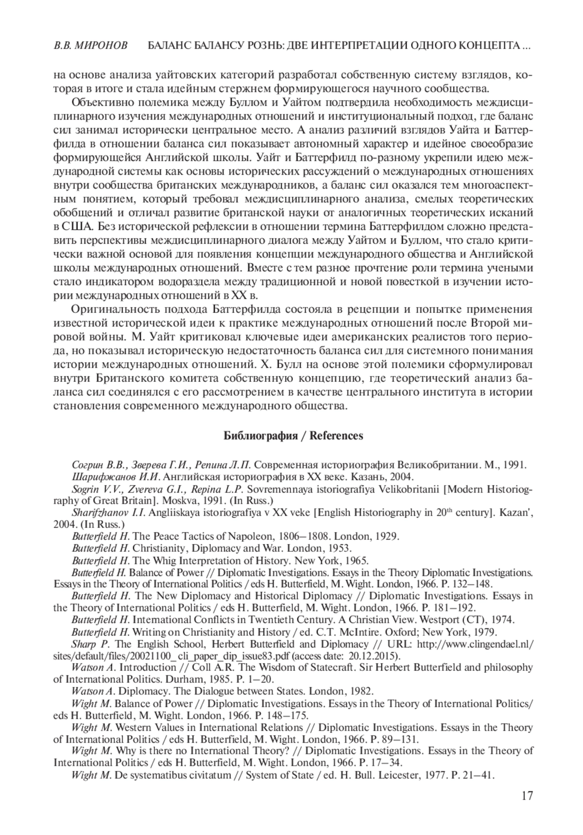 12. Sharp P. The English School, Herbert Butterfield and Diplomacy // URL: http://www.clingendael.nl/sites/default/files/20021100_cli_paper_dip_issue83.pdf (access date: 20.12.2015).