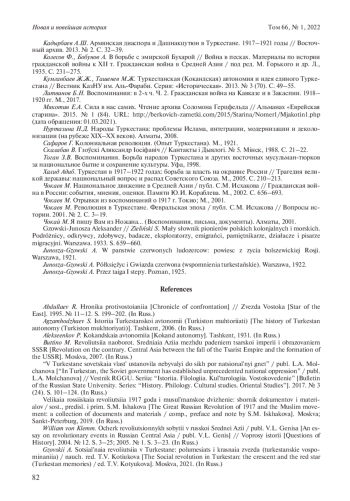 13. Кадырбаев А.Ш. Армянская диаспора и Дашнакцутюн в Туркестане. 1917-1921 годы // Восточный архив. 2013. № 2. С. 32-39. EDN: SCQLUH