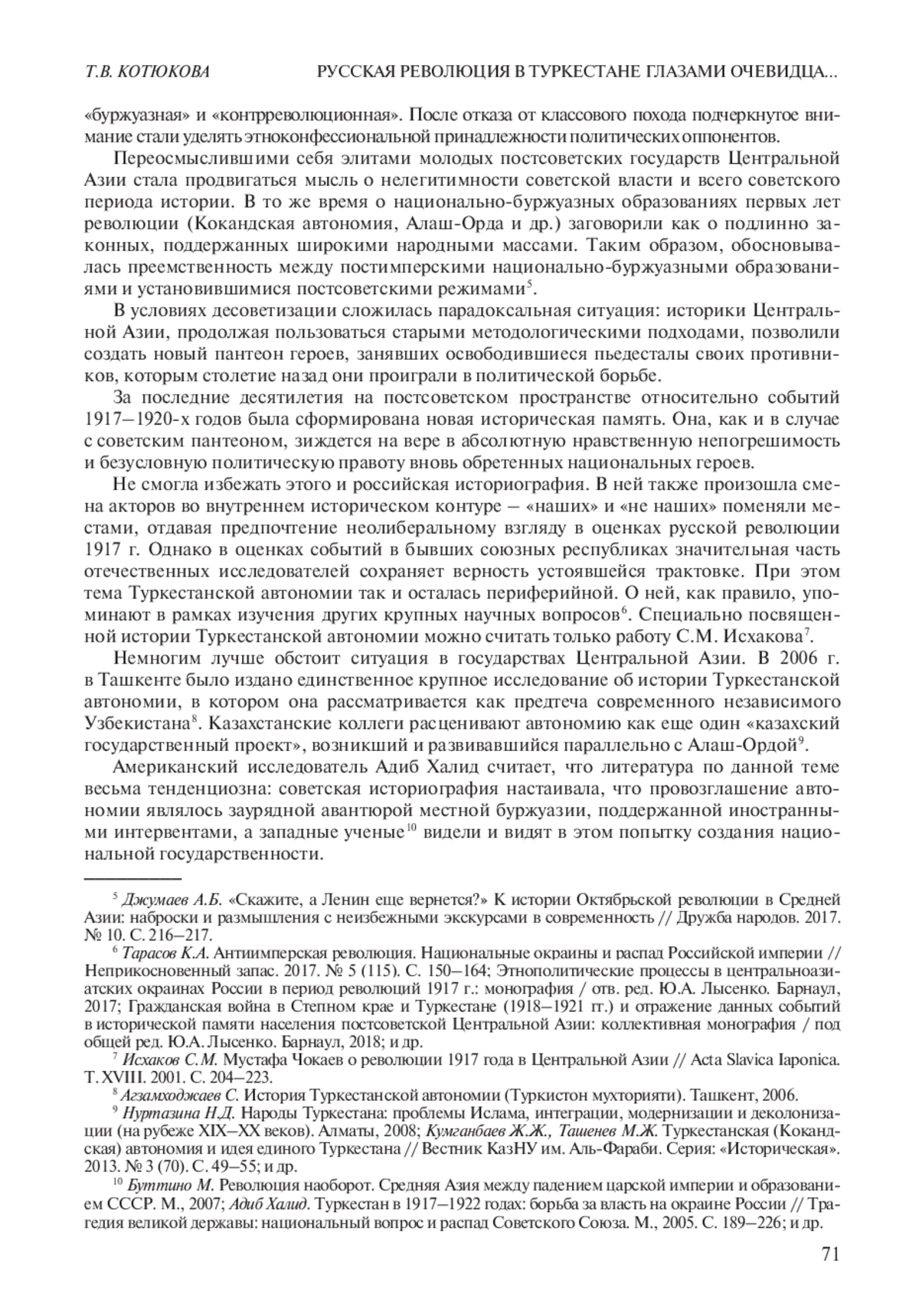 11. Джумаев А.Б. “Скажите, а Ленин еще вернется?” К истории Октябрьской революции в Средней Азии: наброски и размышления с неизбежными экскурсами в современность // Дружба народов. 2017. № 10. С. 213-224.