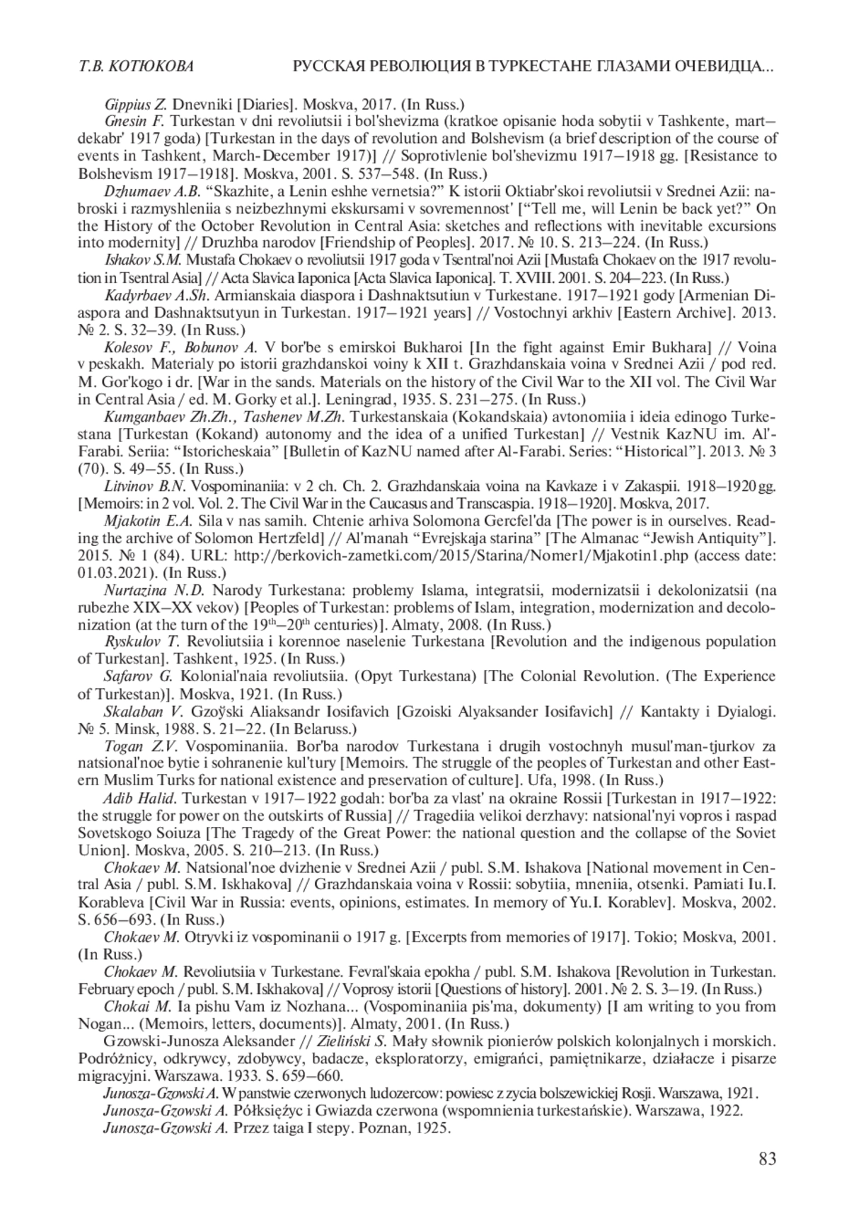 8. Гзовский А. Социальная революция в Туркестане: полумесяц и красная звезда (туркестанские воспоминания) / науч. ред. Т.В. Котюкова. М., 2021.