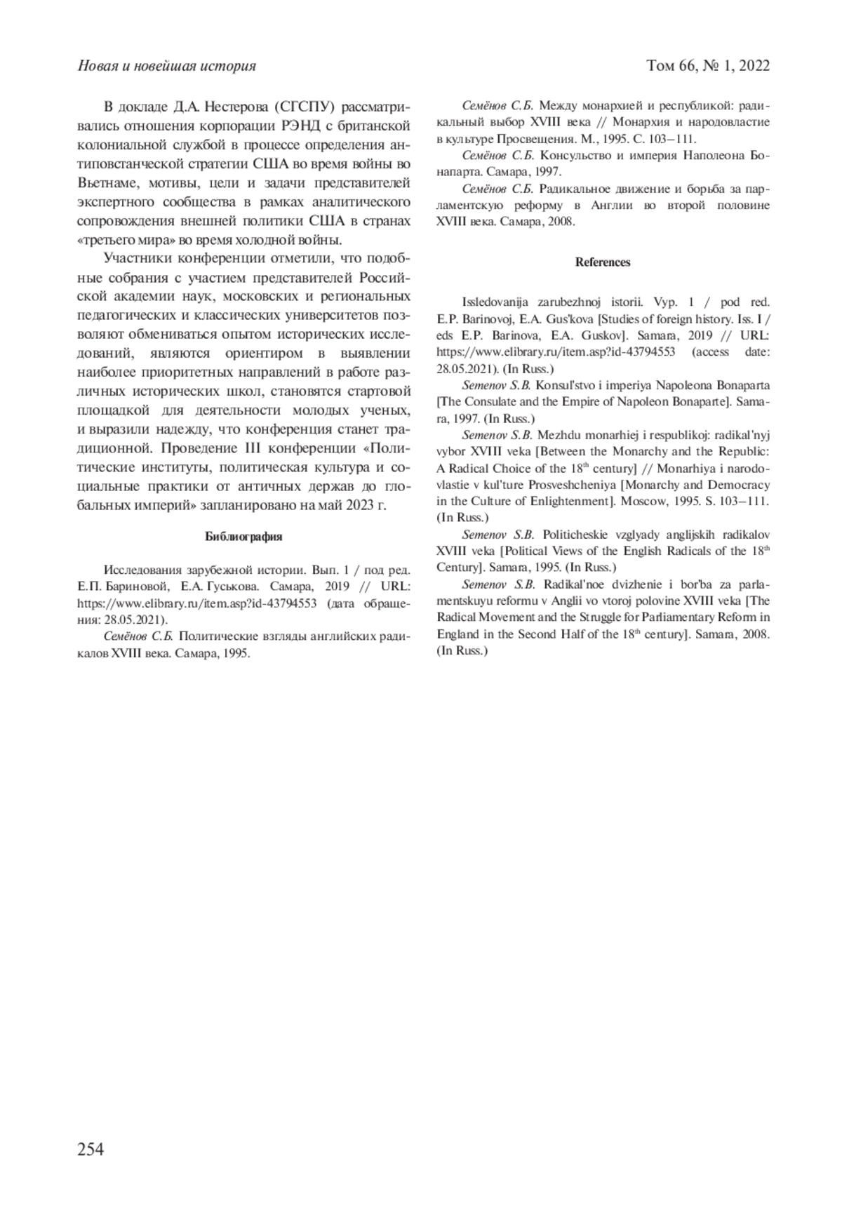 1. Исследования зарубежной истории. Вып. 1 / под ред. Е.П. Бариновой, Е.А. Гуськова. Самара, 2019 // URL: https://www.elibrary.ru/item.asp?id-43794553 (дата обращения: 28.05.2021).
