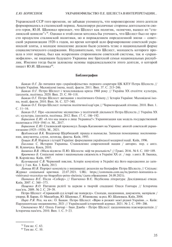 1. Бажан О.Г. До питання про “українофiльство” першого секретаря ЦК КПУ Петра Шелеста // Iсторiя України. Маловiдомi iмена, подiї, факти. 2011. Вип. 37. С. 215-246.