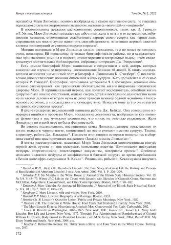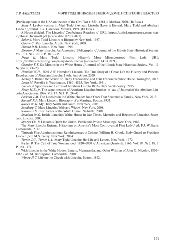 11. Emerson J. Mary Lincoln: An Annotated Bibliography // Journal of the Illinois State Historical Society. Vol. 103. № 2. 2010. P. 180-235.