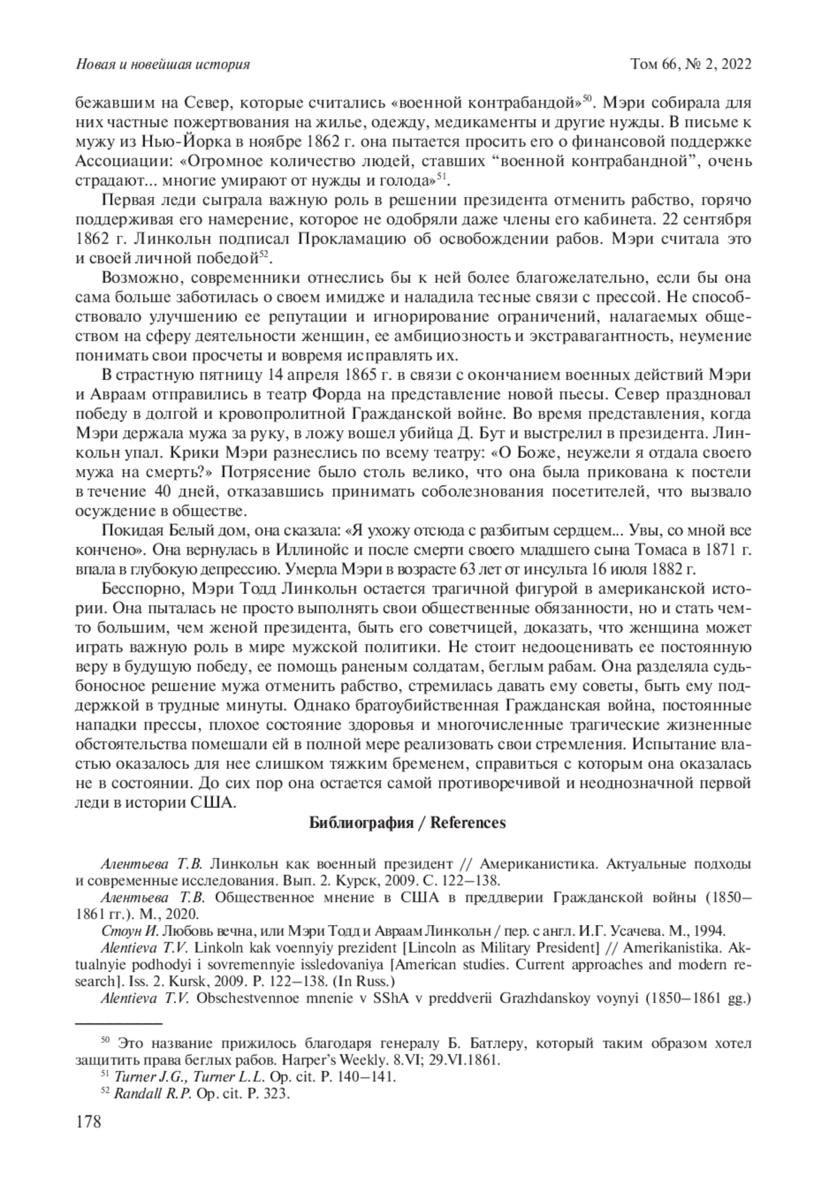 2. Алентьева Т.В. Общественное мнение в США в преддверии Гражданской войны (1850-1861 гг.). М., 2020. EDN: PZCFGZ