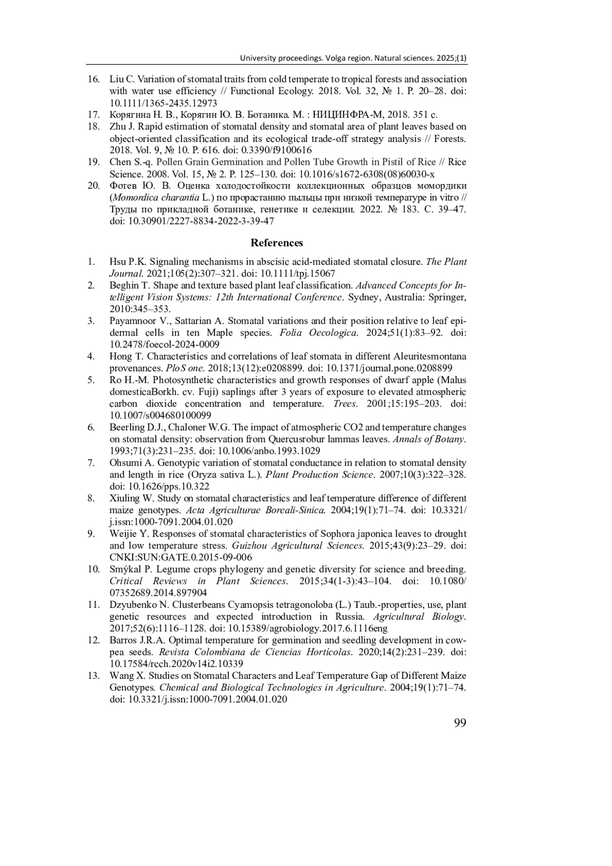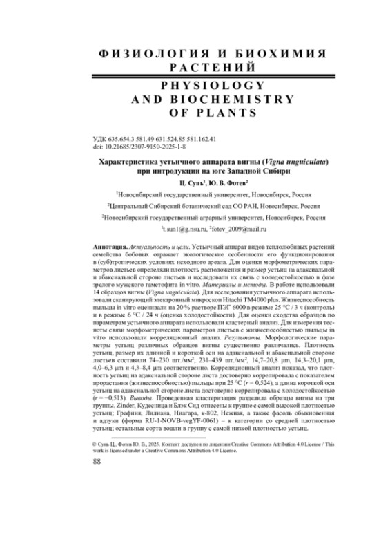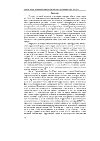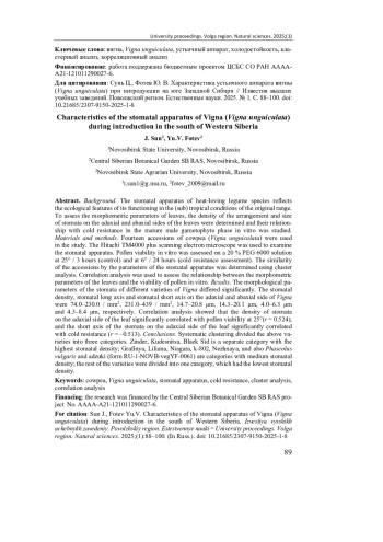 Статья: Характеристика устьичного аппарата вигны (Vigna unguiculata) при интродукции на юге Западной Сибири (2025)