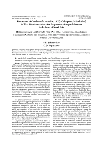 11. Tshernyshev S.E. 2012b. [A review of soft-winged flower beetle fauna (Coleoptera, Malachiidae) of North Asia] // Euroasian Entomological Journal. Vol.11. No.6. C.575-587. [In Russian].