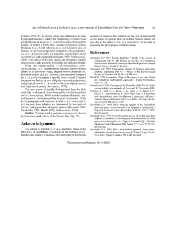 6. Савченко Е. Н. 1969. [Новый субарктический вид мошек из рода Austrolimnophila Al. (Diptera, Limoniidae)] // Доклады Академии наук Украинской ССР (Б). С. 1117–1120. [На украинском языке].