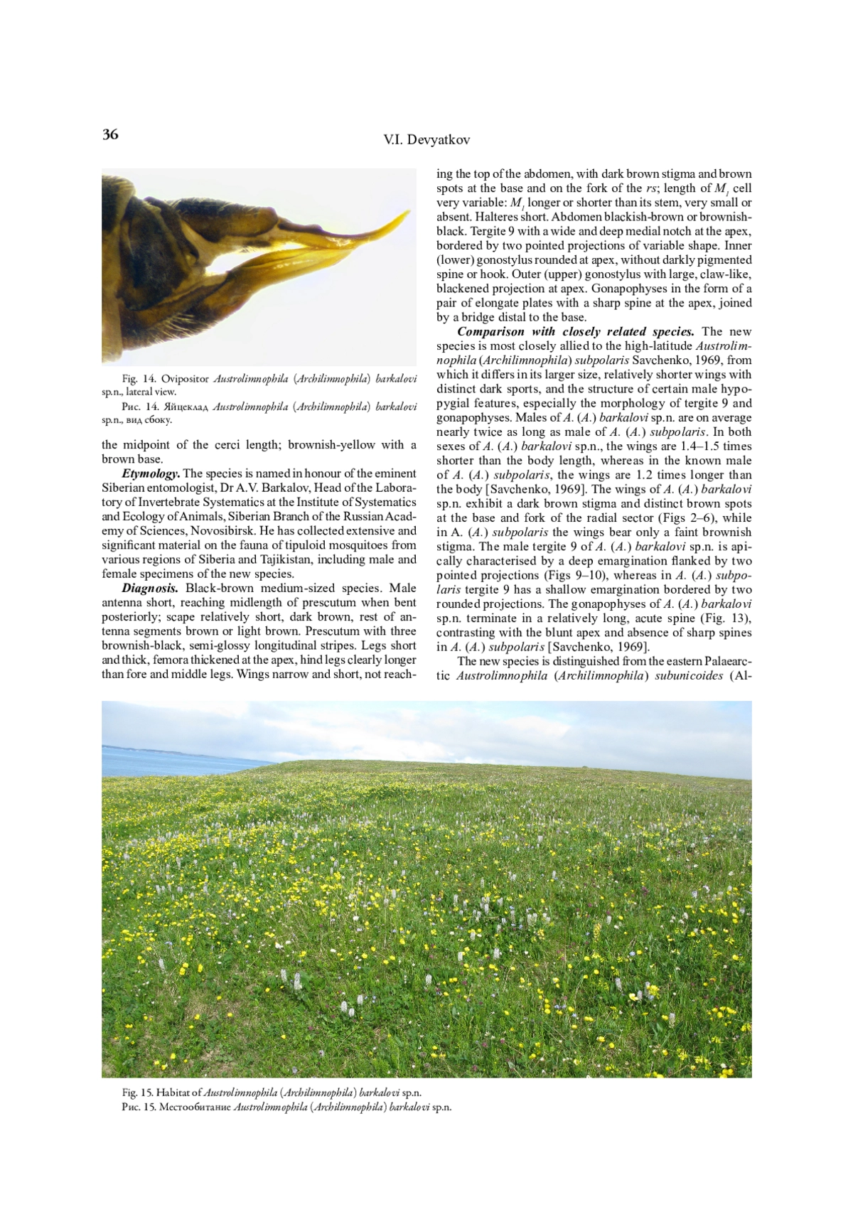The genus Austrolimnophila Alexander, 1920, one of the largest in the family Limoniidae, comprises fi ve subgenera and about 190 species. The subgenus Austrolimnophila (Archilimnophila) Alexander, 1934 is relatively small and contains six species: two Holarctic, three Palaearctic and one non-Arctic [see Oosterbroek, 2024]. The high-latitude representatives include Austrolimnophila (Archilimnophila) subpolaris Savchenko, 1969, originally described from the lower Yenisei River basin, and the Holarctic Austrolimnophila (Archilimnophila) harperi (Alexander, 1926), distributed across northern Eurasia and North America.
