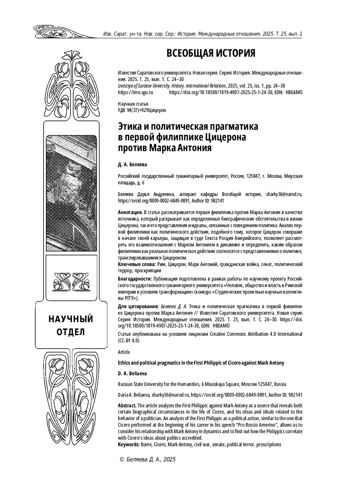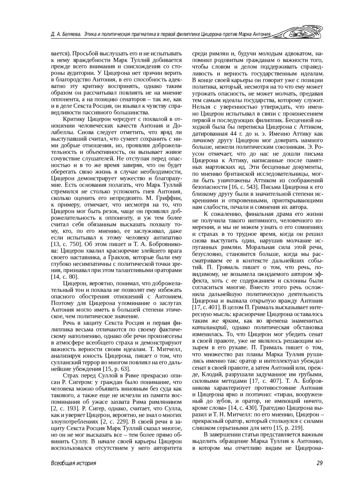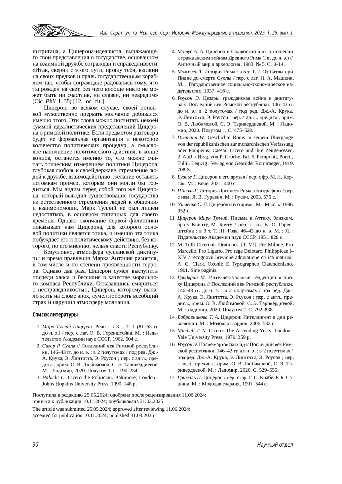 4. Мотус А. А. Цицерон и Саллюстий в их отношении к гражданским войнам Древнего Рима (I в. до н. э.) // Античный мир и археология. 1983. № 5. С. 3-14. EDN: UZFIFL