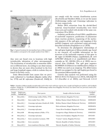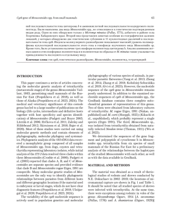 Статья: Анализ последовательности гена cytb тетратиридиев Mesocestoides Vaillant, 1863 от мелких млекопитающих Дальнего Востока России (2025)