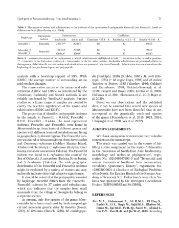 Данная работа продолжает серию статей, посвященных молекулярно-генетическому анализу широко распространенных гельминтов – цестод рода Mesocestoides, паразитирующих (на стадии метацестоды) у мелких млекопитающих. В этой работе мы изучаем генетическое разнообразие Mesocestoides spp. от микромаммалий Дальнего Востока России на примере гена cytb. Впервые у Mesocestoides spp., паразитирующих у хозяев разных родов и видов, обитающих в этом регионе, выявлен полиморфизм нуклеотидной последовательности гена цитохрома b и аминокислотной последовательности кодируемого полипептида. Были выявлены два вида Mesocestoides spp., не относящиеся к генетически подтвержденным видам рода. Один из них обнаружен только у Micromys minutus (Pallas, 1771), добытого в районе села Георгиевка Хабаровского края. Второй вид представлен девятью особями из географически далеких локаций, у которых обнаружено две генетические сублинии и 11 нуклеотидных различий в последовательности гена cytb. Индексы молекулярного разнообразия показывают высокий уровень полиморфизма нуклеотидной последовательности этого гена в генофонде изученного вида Mesocestoides sp. Кроме того, было установлено наличие трех изоформ полипептида цитохрома b. Анализ аминокислотных замен в этих изоформах полипептида и в полипептиде из образца от M. minutus также указывает на принадлежность последнего к отдельному виду.