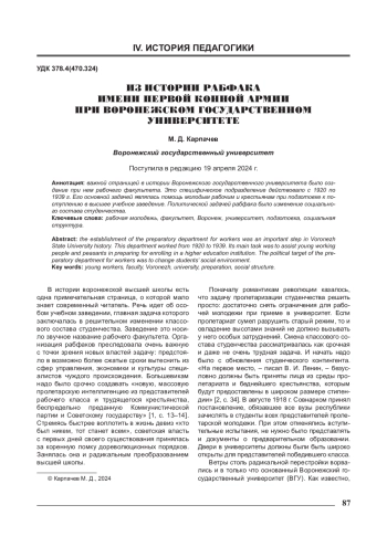 Важной страницей в истории Воронежского государственного университета было создание при нем рабочего факультета. Это специфическое подразделение действовало с 1920 по 1939 г. Его основной задачей являлась помощь молодым рабочим и крестьянам при подготовке к поступлению в высшее учебное заведение. Политической задачей рабфака было изменение социального состава студенчества.