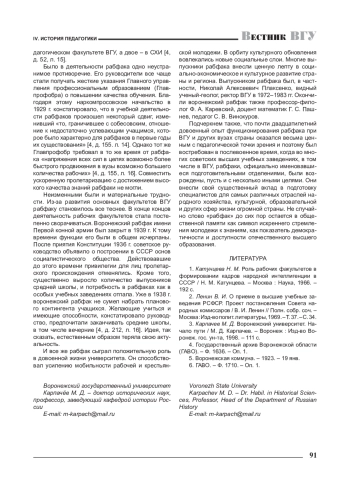 1. Катунцева Н. М. Роль рабочих факультетов в формировании кадров народной интеллигенции в СССР / Н. М. Катунцева. - Москва: Наука, 1966. -192 с.