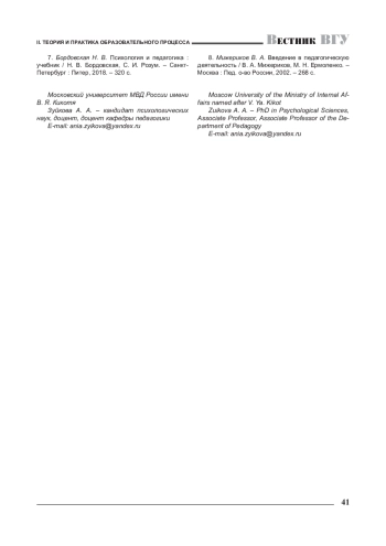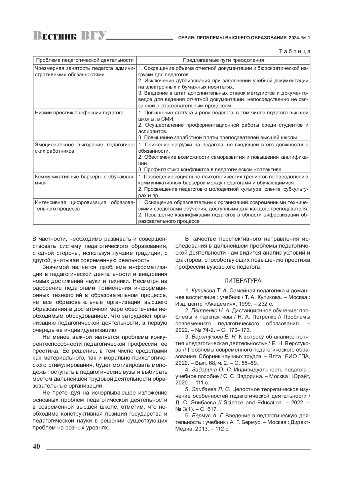 ЗУЙКОВА А. А. ПРОБЛЕМЫ ПЕДАГОГИЧЕСКОЙ ДЕЯТЕЛЬНОСТИ В СОВРЕМЕННЫХ РЕАЛИЯХ ВЫСШЕЙ ШКОЛЫ // ВЕСТНИК ВОРОНЕЖСКОГО ГОСУДАРСТВЕННОГО УНИВЕРСИТЕТА. СЕРИЯ: ПРОБЛЕМЫ ВЫСШЕГО ОБРАЗОВАНИЯ. 2024. № 1