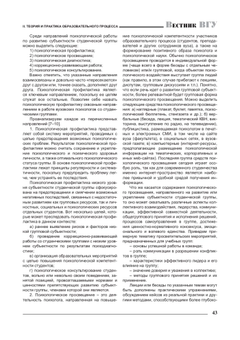 Статья: НАПРАВЛЕНИЯ ПСИХОЛОГИЧЕСКОЙ РАБОТЫ ПО РАЗВИТИЮ СУБЪЕКТНОСТИ СТУДЕНЧЕСКОЙ ГРУППЫ (2024)