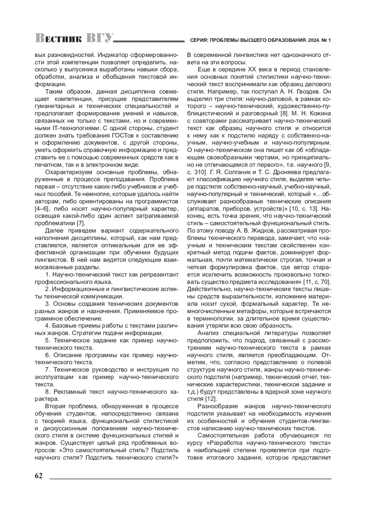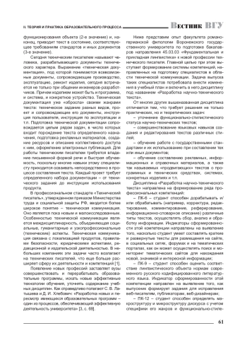 В статье рассматривается проблема подготовки бакалавров лингвистики к новой профессии технического писателя. Описывается опыт Воронежского государственного университета по реализации соответствующей подготовки, направленной на интеграцию знаний и компетенций в области лингвистики и современных компьютерных технологий. В процессе обучения студентов были выявлены трудности, связанные с отсутствием необходимых учебных пособий, а также с неопределенностью места научно-технического стиля в системе функциональных стилей литературного языка. Освоение новой профессии позволяет будущим лингвистам расширить знания о стилистических особенностях научно-технических текстов, а также предоставляет широкие возможности применения современных компьютерных технологий для создания текстов научно-технического стиля.