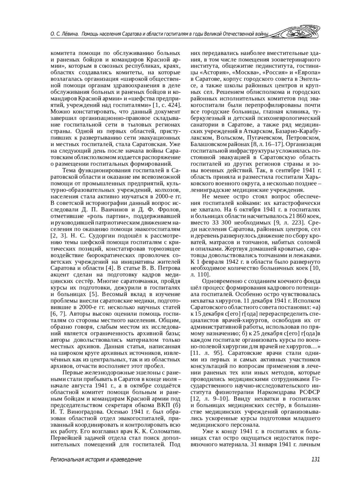 6. Мурылёв Ю. А., Мурылёв В. Ю. Организация работы госпиталей тыла страны на территории Саратовской области в период Великой Отечественной войны 1941-1945 годов. Саратов: Издательство Саратовского медицинского университета, 2000. 64 с.