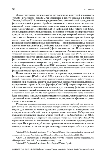9. Rashkin et al. 2017 - Rashkin H., Choi E., Jang J. Y., Volkova S., Choi Y. Truth of varying shades. Analyzing language in fake news and political fact-checking // EMNLP Proceedings. Copenhagen, 2017. P. 2931-2937.
