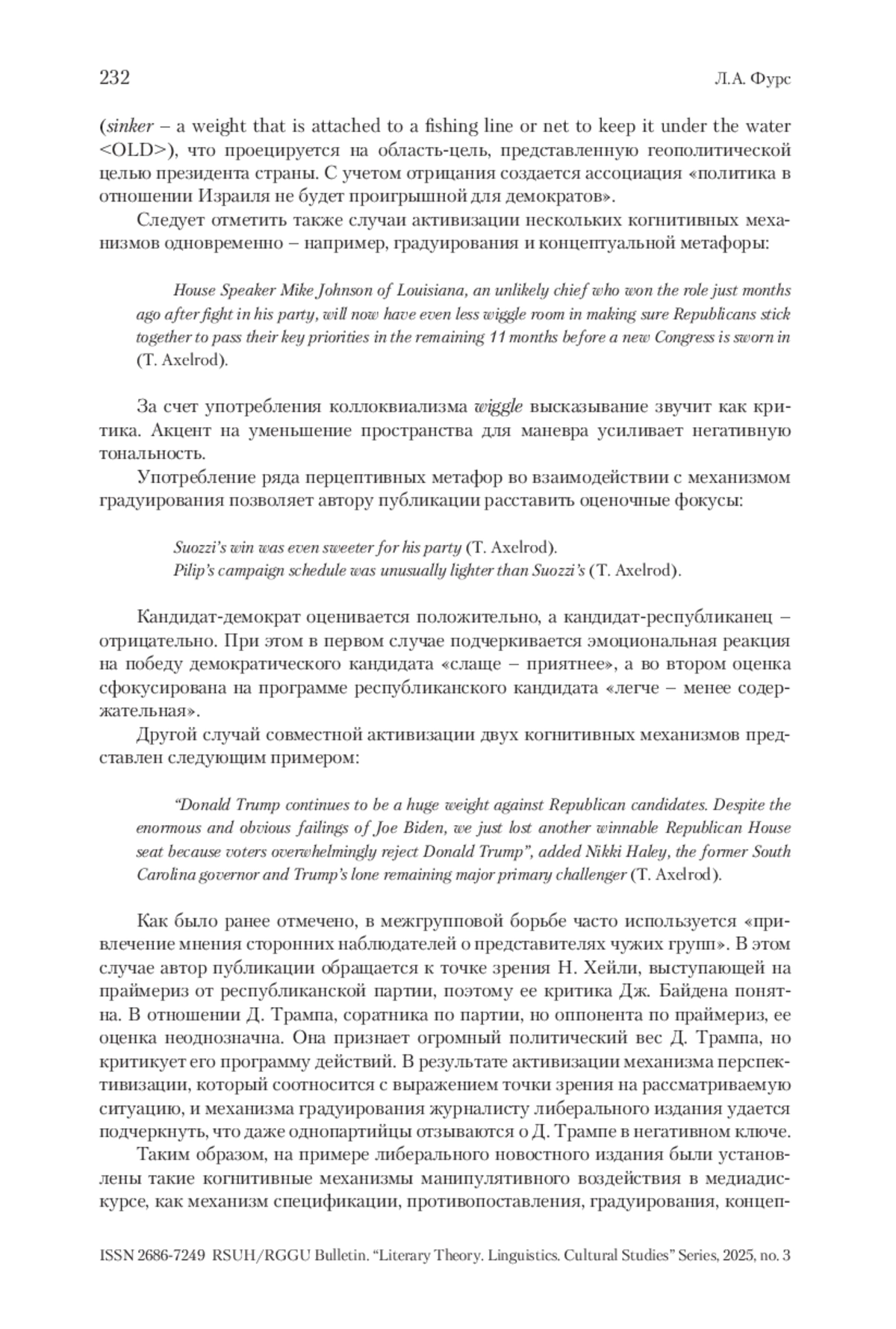 4. Фурс 2020 - Фурс Л.А. Доминантный принцип формирования смысла предложения и его связь с метакогницией // Когнитивные исследования языка. 2020. № 4 (43). С. 167-187.