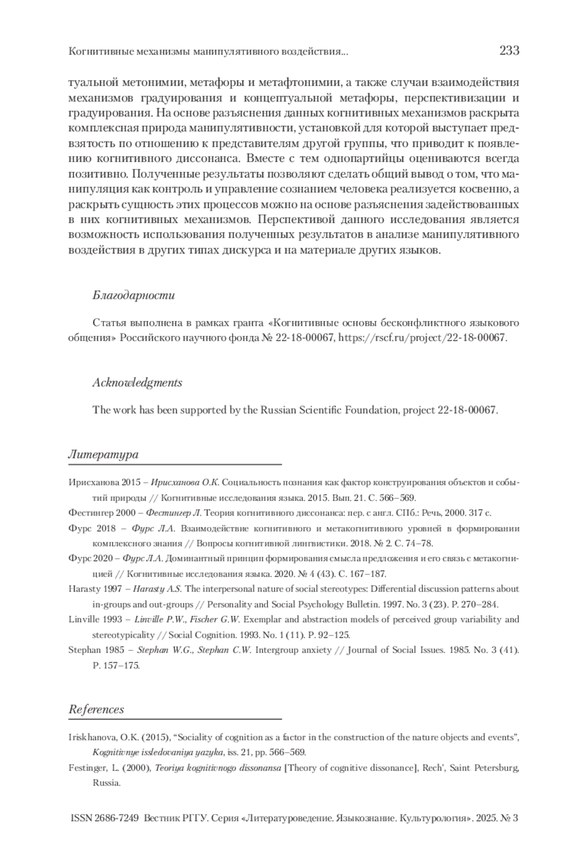 1. Ирисханова 2015 - Ирисханова О.К. Социальность познания как фактор конструирования объектов и событий природы // Когнитивные исследования языка. 2015. Вып. 21. С. 566-569.