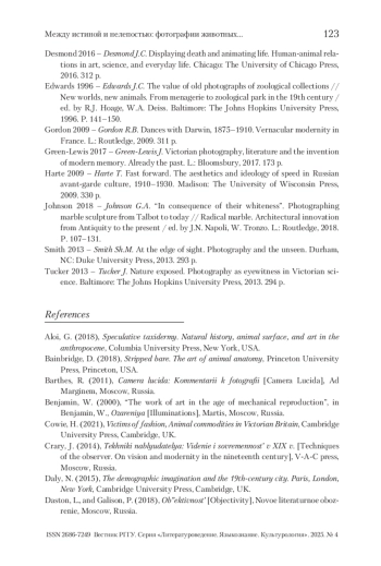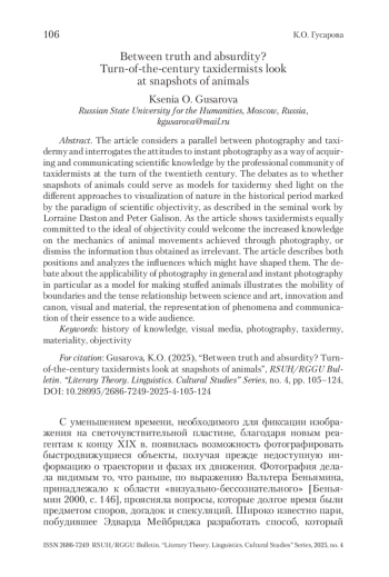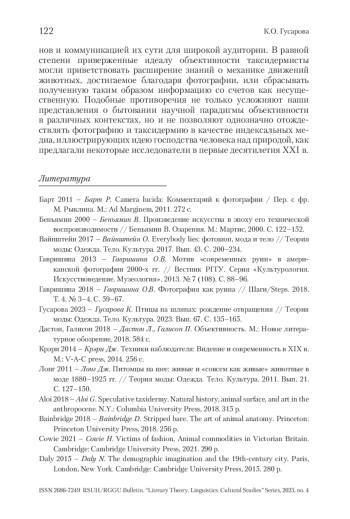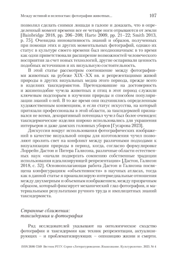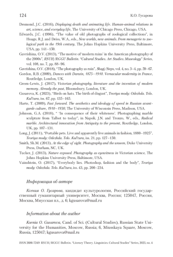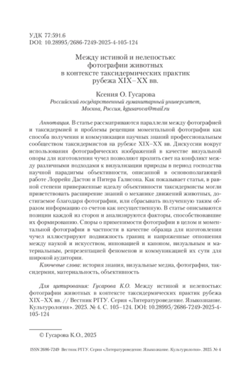ГУСАРОВА К. О. МЕЖДУ ИСТИНОЙ И НЕЛЕПОСТЬЮ: ФОТОГРАФИИ ЖИВОТНЫХ В КОНТЕКСТЕ ТАКСИДЕРМИЧЕСКИХ ПРАКТИК РУБЕЖА XIX–XX ВВ. // ВЕСТНИК РГГУ. СЕРИЯ «ЛИТЕРАТУРОВЕДЕНИЕ. ЯЗЫКОЗНАНИЕ. КУЛЬТУРОЛОГИЯ». 2025. № 4
