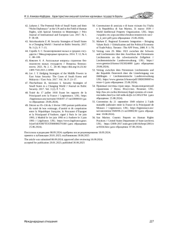 43. Vaicekauskaite Z. М. Security Strategies of Small States in а Changing World // Journal on Baltic Security. 2017. № 3 (2). Р. 7-15.