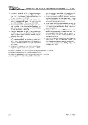 32. Экономическая интеграция Большой Евразии ускорится // Интернет-портал СНГ. URL: https://e-cis.info/news/566/102052/ (дата обращения: 09.03.2024).