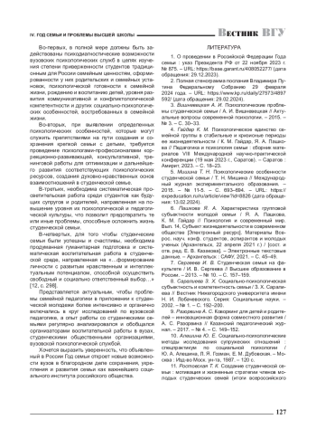 3. Вишневецкая А. И. Психологические проблемы студенческой семьи / А. И. Вишневецкая // Актуальные вопросы современной психологии. - 2015. -№ 3. - С. 30-33.