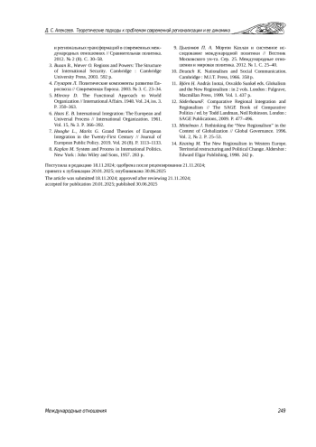 2. Воскресенский А. Д. Концепции регионализации, региональных подсистем, региональных комплексов и региональных трансформаций в современных международных отношениях // Сравнительная политика. 2012. № 2 (8). C. 30-58. EDN: QCMENH