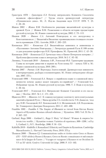 16. Thomson 2000 - Thomson F.J. Communications orales et écrites entre Grecs et Russes (IXe - XIIIe siècles): Russes à Byzance, Grecs en Russie: connaissance et méconnaissance de la langue de l’autre // Voyages et voyageurs à Byzance et en Occident du VIe au XIe sièсle. Genève: Université de Liège. 2000. P. 113-163.