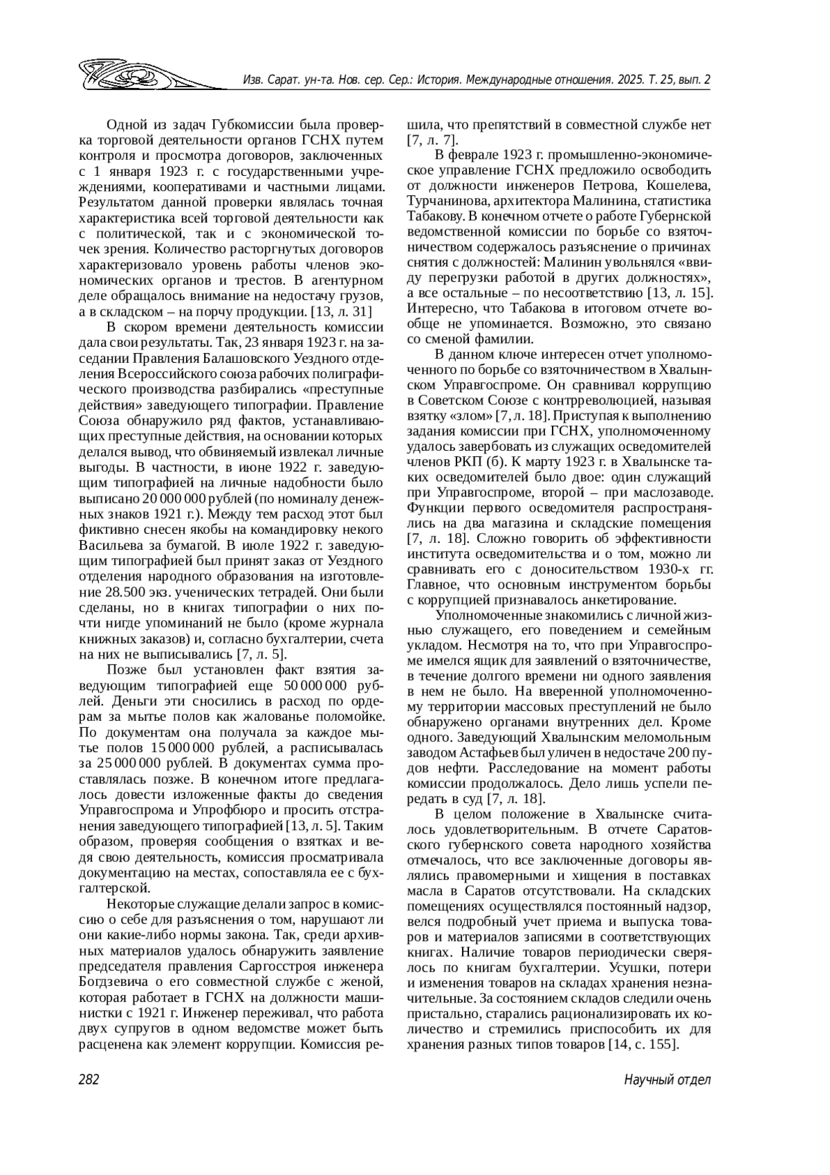 11. Воробьев С. В. Соблазны нэпа: должностные преступления ответственных работников и хозяйственных руководителей Урала в 1920-е годы // Вестник Пермского университета. История. 2014. Вып. 2 (25). С. 60-71. EDN: SZZMVN