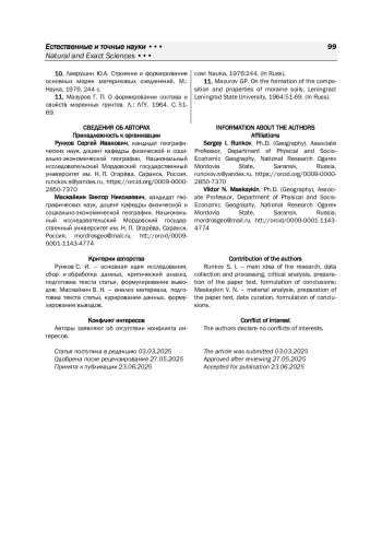7. Рунков С. И., Маскайкин В. Н. Минералогия неоплейстоценовых морен и мореноподобных отложений территории Мордовии // Вестник Забайкальского государственного университета. 2021. Т. 27. № 2. С. 28-41. DOI: 10.21209/2227-9245-2021-27-2-28-41.