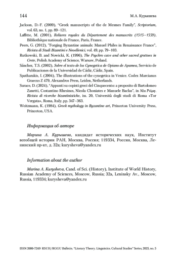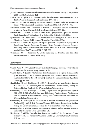 10. Peers 2012 - Peers G. Forging Byzantine animals: Manuel Philes in Renaissance France // Rivista di Studi Bizantini e Neoellenici. 2012. Vol. 49. P. 79-103.