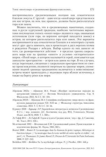 Статья: Топос «иного мира» в средневековых французских поэмах о рождении Рыцаря с лебедем (2025)